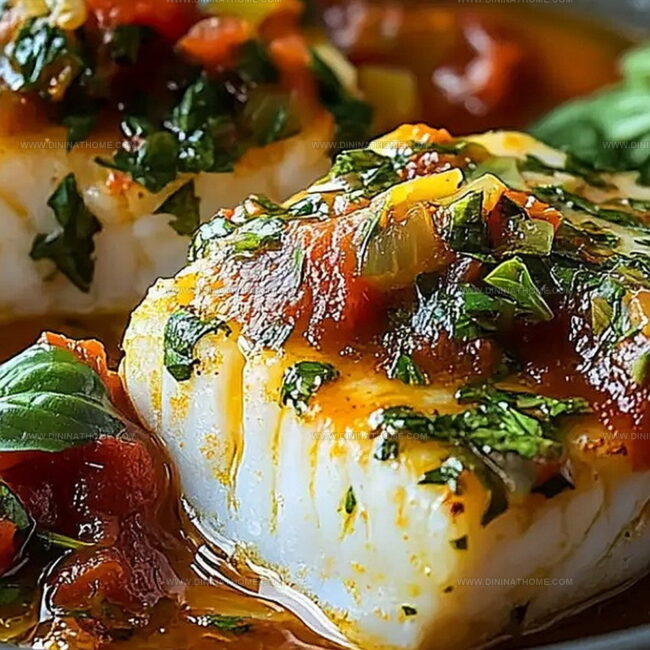 Mediterranean magic meets seafood elegance in this pan-seared cod recipe, showcasing robust flavors from sun-drenched coastlines. Fresh herbs and tangy tomato sauce create a simple yet sophisticated dish you’ll savor with each delightful bite.
