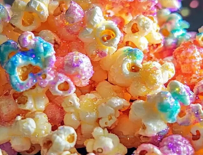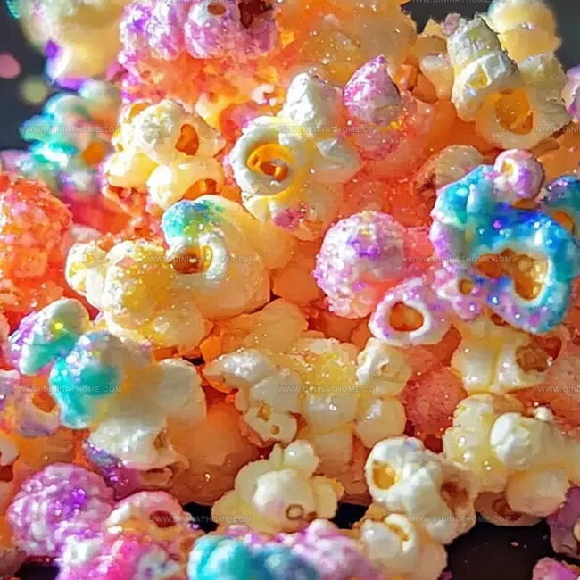 - With gentle hands, delicately fold the coatings through the popcorn, maintaining distinct color boundaries and ensuring each kernel receives a vibrant embrace without muddying the color palette.