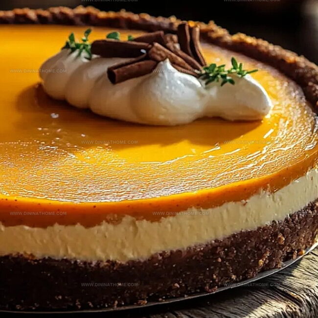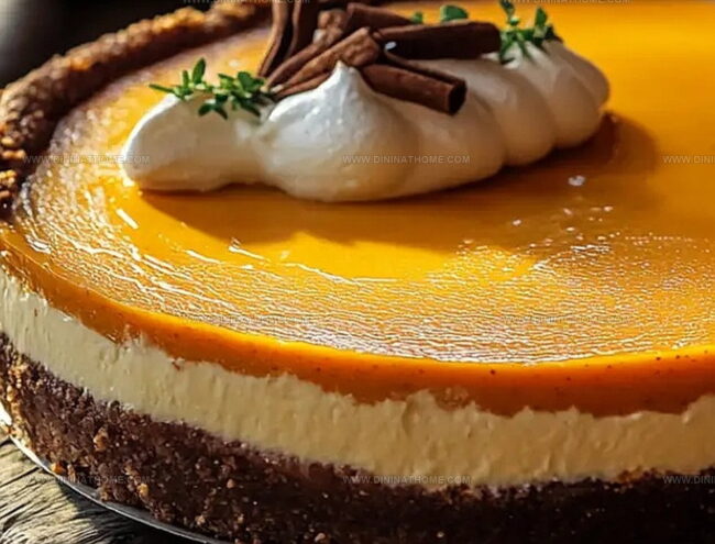 Creamy pumpkin cheesecake blends autumn’s warmth with classic dessert comfort. Rich spices and smooth cream cheese create a luxurious slice that invites you to savor seasonal indulgence.