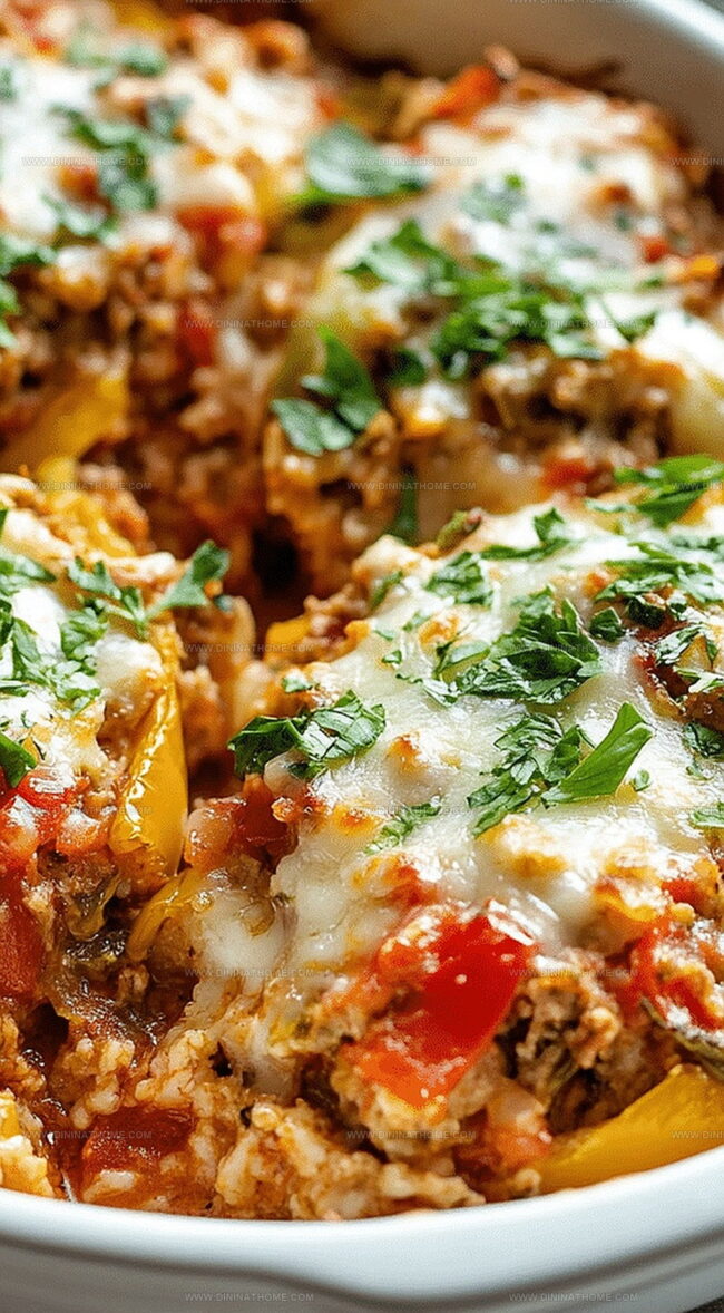 Enjoy the rich, comforting flavors of your homemade stuffed pepper casserole!