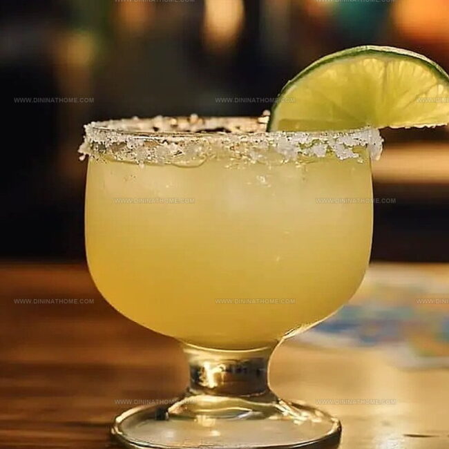 - Prepare the glass exterior by moistening the rim with a fresh lime wedge, then delicately coat with coarse salt crystals for a tangy, textured finish.