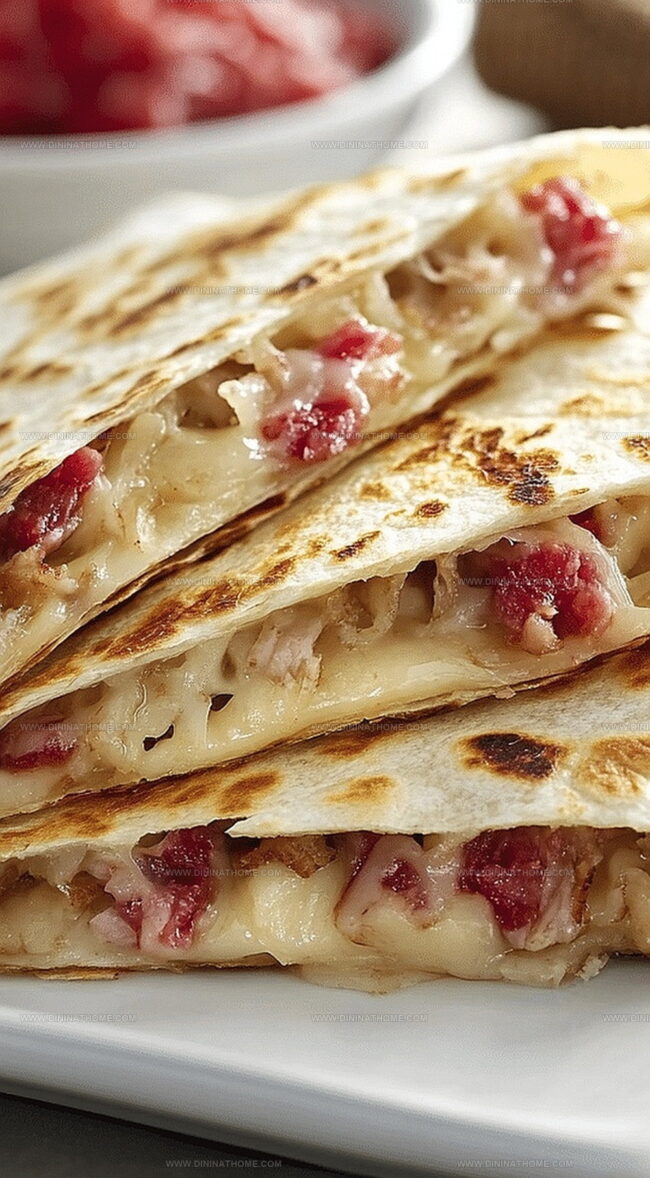 Slice the quesadillas into wedges and serve warm, ready to delight your taste buds with a classic Reuben-inspired twist.
