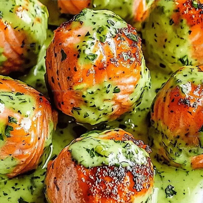 Drizzle or serve the vibrant green avocado sauce in a separate bowl alongside the salmon balls.