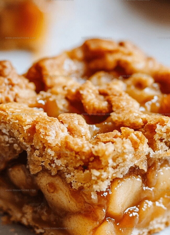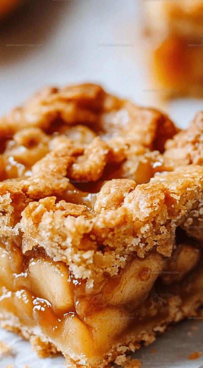 Cut the cooled bars into neat squares, revealing the beautiful layers of buttery crust and spiced apple filling.