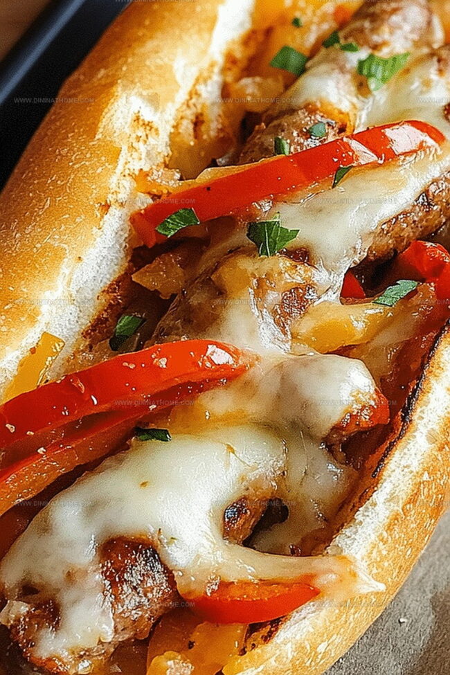 Sizzling sausage and peppers sandwich elevates comfort food with Italian-style flair. Melted cheese, caramelized peppers, and perfectly grilled sausage create a mouthwatering meal you’ll crave again and again.