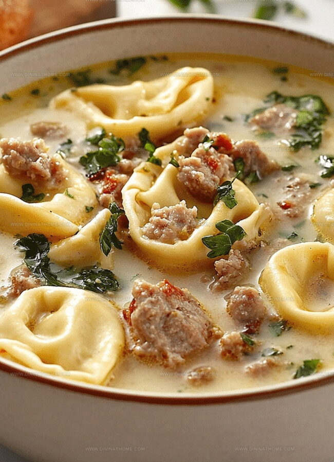 Hearty sausage tortellini soup brings comfort straight from Italian kitchens to your dinner table. Savory Italian sausage, tender cheese tortellini, and rich broth create a soul-warming meal you’ll crave on chilly evenings.