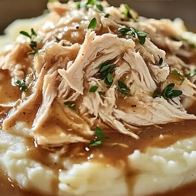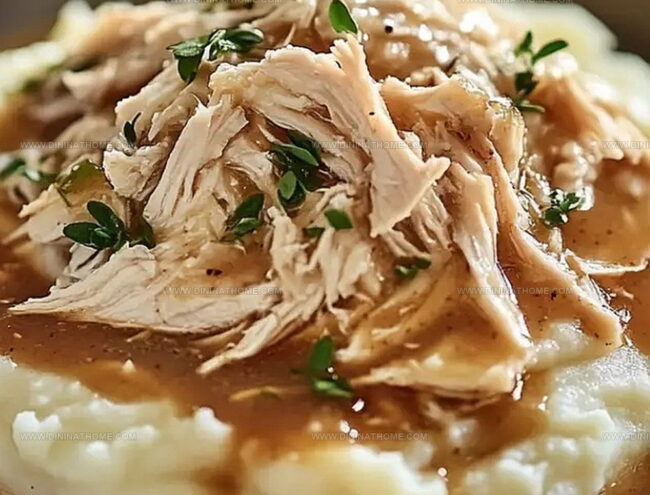 Comfort meets culinary magic in this hearty shredded chicken gravy that transforms ordinary mashed potatoes into a delectable feast.