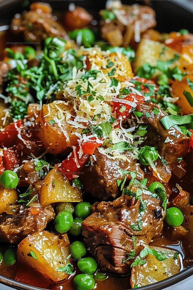 Rustic summer beef casserole blends hearty Mediterranean flavors with tender slow-cooked meat and garden-fresh vegetables. Rich herbal notes and slow simmering create a comforting meal you’ll savor with every delicious spoonful.