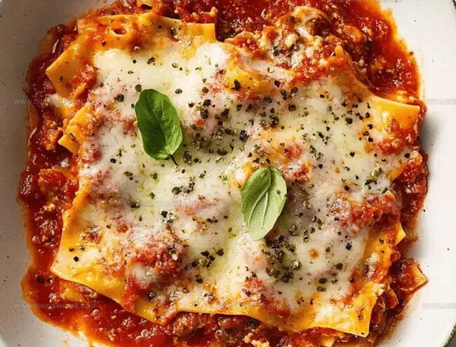 - Once cooking completes, remove from heat and let the lasagna rest momentarily, allowing flavors to meld and settle before serving.
