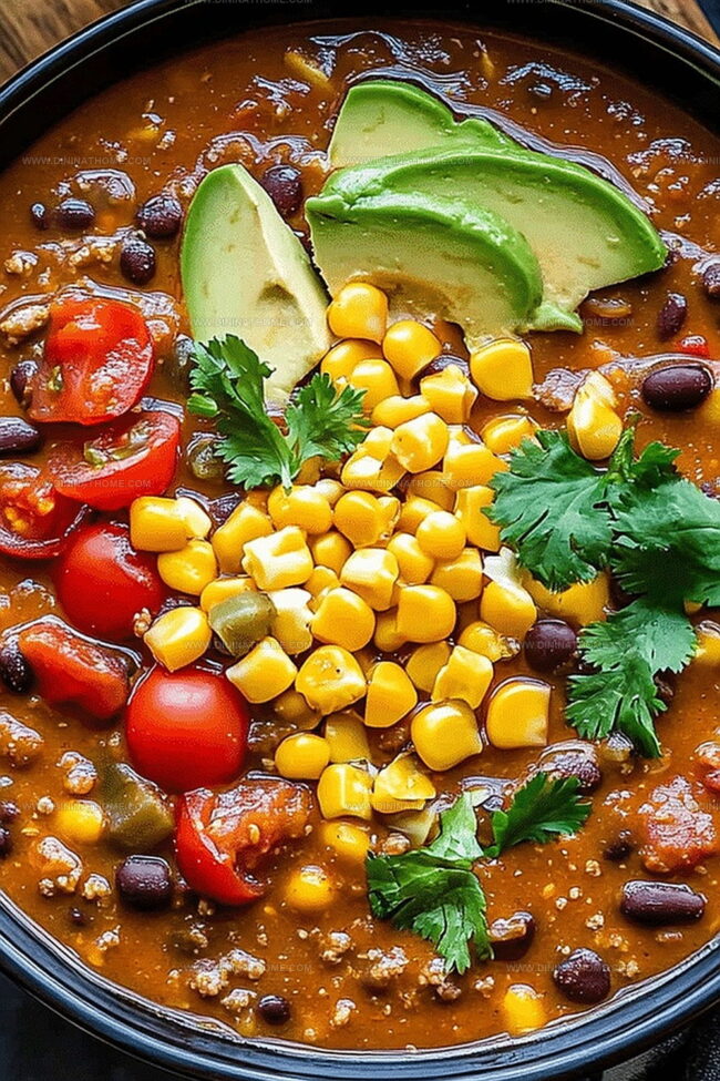 - Ladle the steaming chili into serving bowls, garnishing with vibrant fresh cilantro and zesty pico de gallo for a burst of freshness.