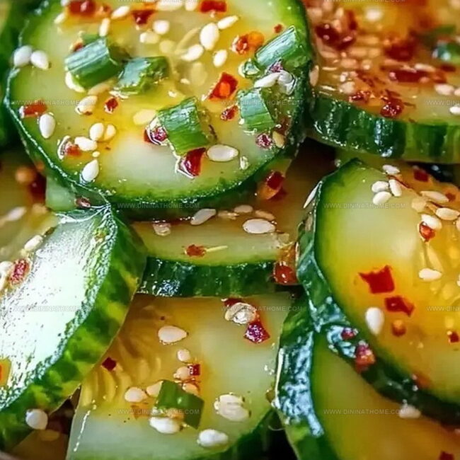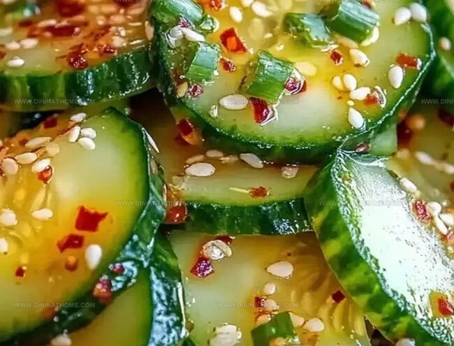 Crunchy cucumber slices dance with vibrant seasonings that awaken every taste bud.