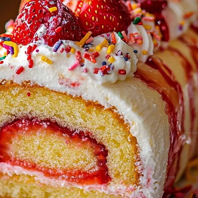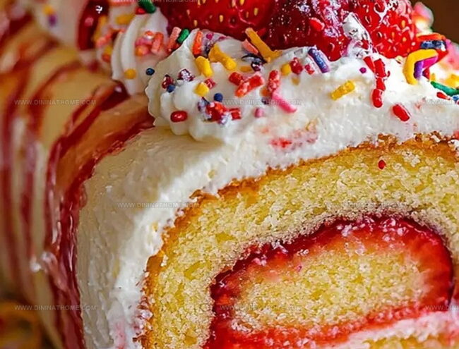 Cake Base Ingredients:Dry Ingredients:Filling and Topping Ingredients:Birthday Cake Roll Steps with Strawberry Filling