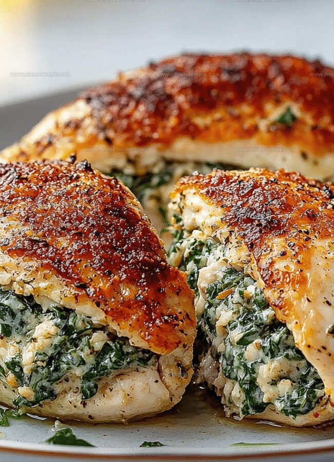 Succulent stuffed chicken breast brims with Mediterranean charm, blending rich herbs and creamy cheese into a delightful culinary experience. Crispy golden exterior meets tender, flavorful interior, promising a memorable meal you’ll savor with each delectable bite.