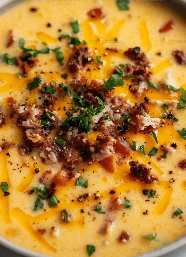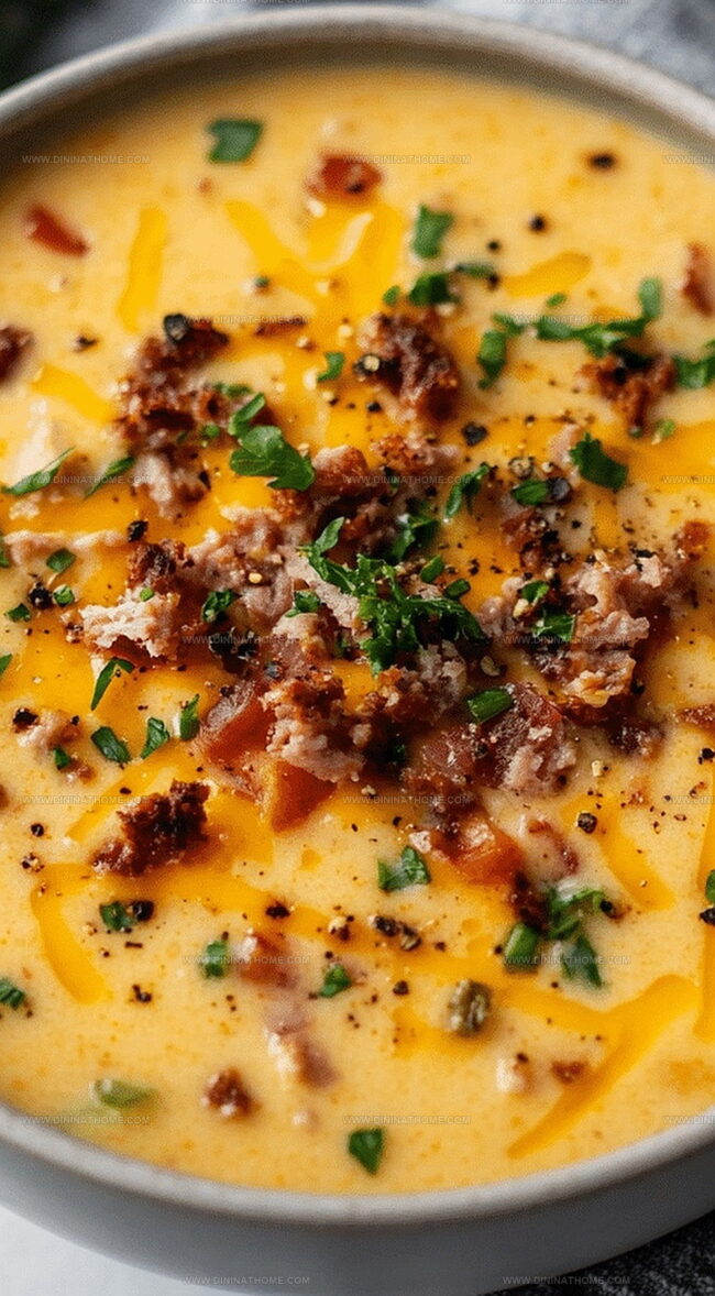 Midwest comfort shines through this hearty cheeseburger soup, packed with savory ground beef, creamy potatoes, and rich cheese. Warm kitchen aromas and satisfying flavors invite you to savor each spoonful of pure culinary comfort.