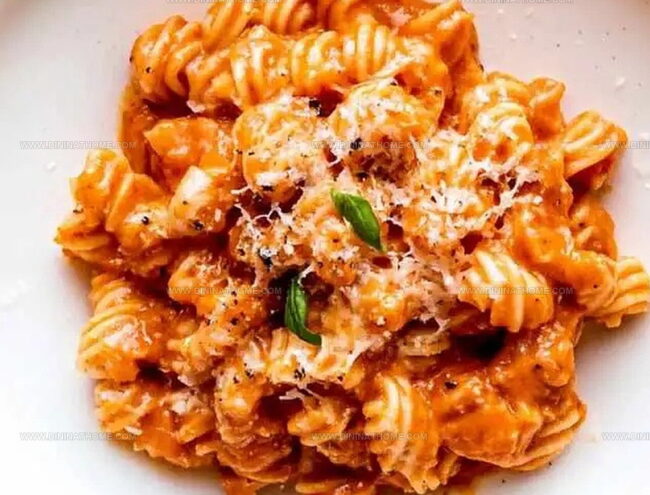 - Select your preferred pasta – whether penne, rigatoni, or spaghetti – and generously coat with the creamy vodka sauce. Enhance the presentation by garnishing with additional Parmesan shavings and delicate fresh basil leaves.