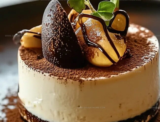 Luxurious French-Italian fusion, Tiramisu Entremet blends classic coffee-soaked flavors with elegant layered textures. Silky mascarpone mousse and delicate sponge cake create a sophisticated dessert that invites pure culinary indulgence.
