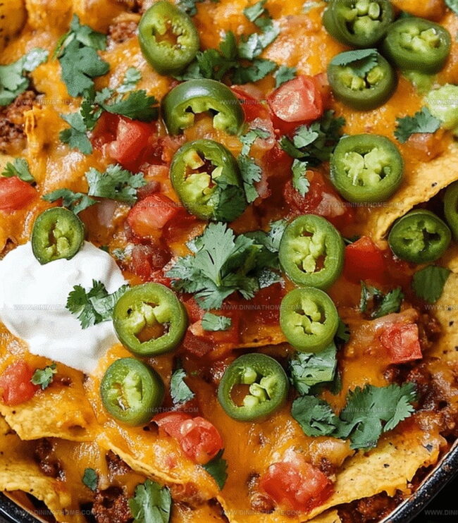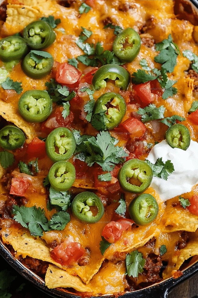 - Generously blanket the protein mixture with shredded sharp cheddar cheese and crispy corn chips, ensuring complete coverage for maximum flavor and texture.